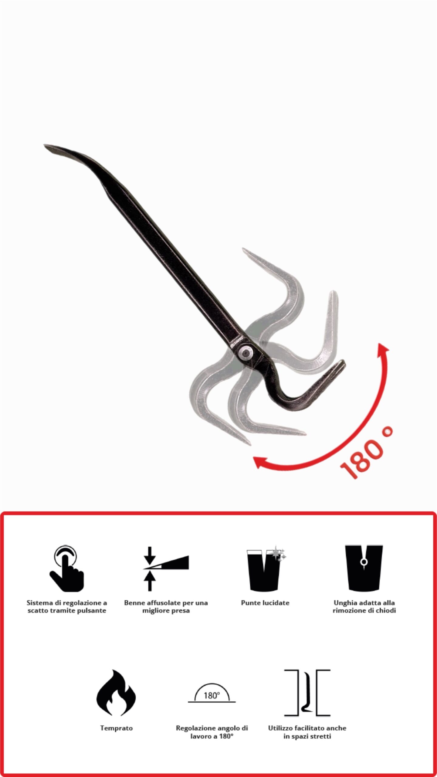 Leverino in acciaio con unghia REGOLABILE a 180 gradi